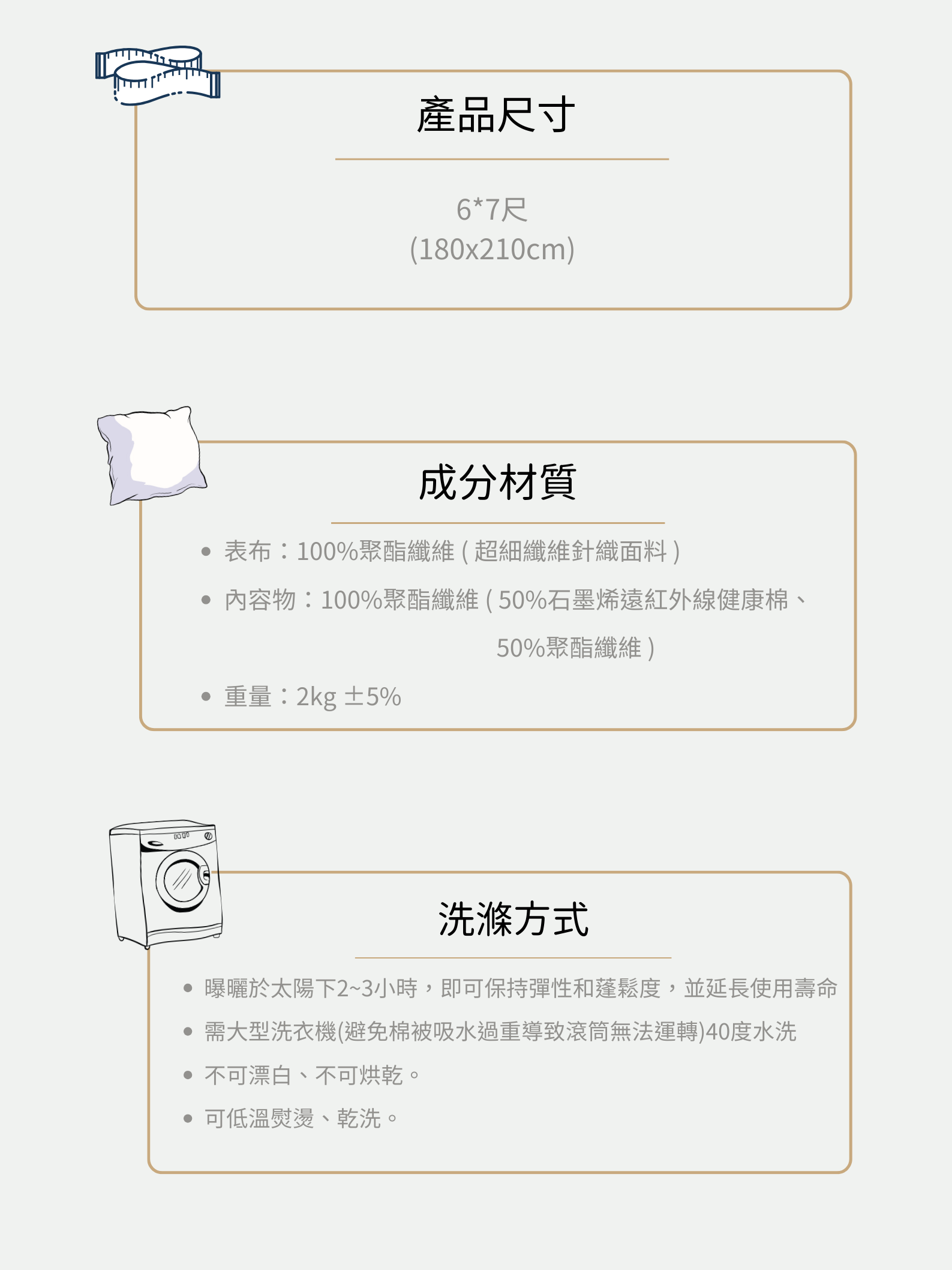 內容物:100%聚酯纖維 ( 50%石墨烯遠紅外線健康棉、50%聚酯纖維 )