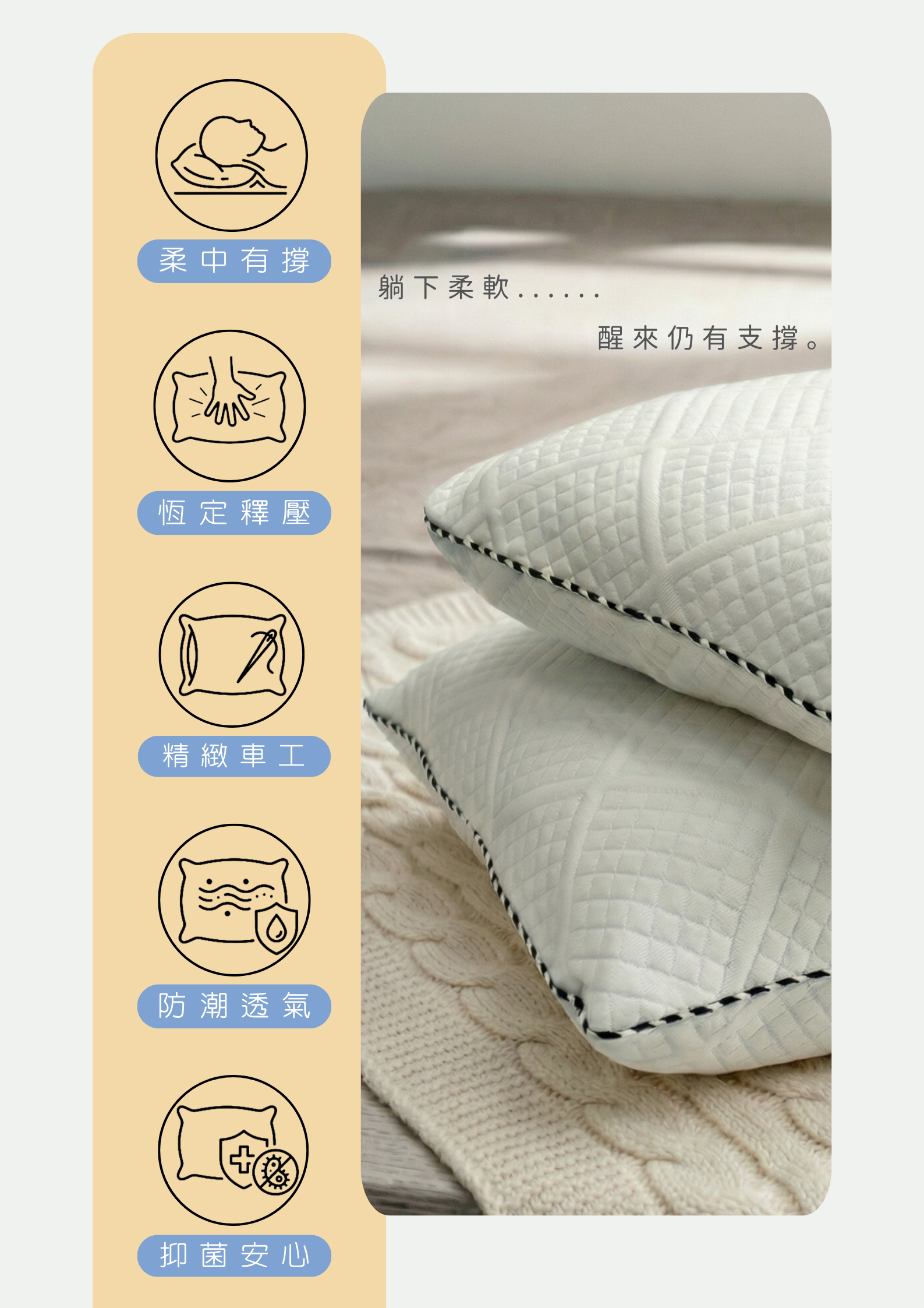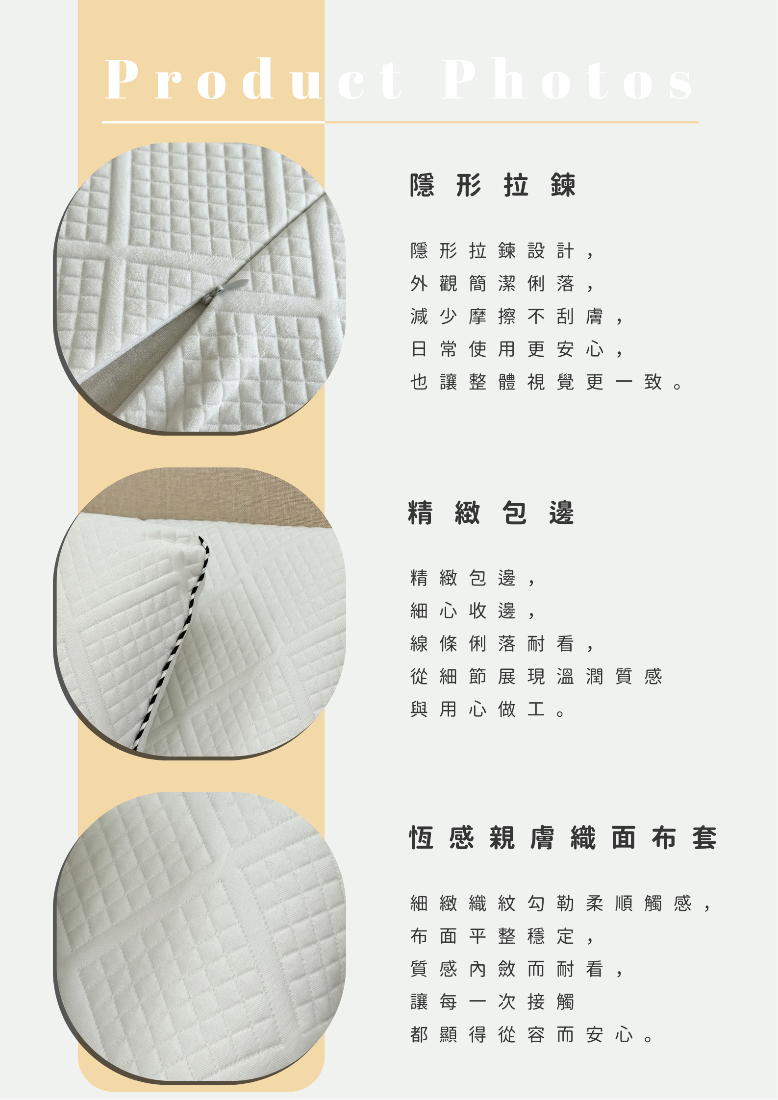 表布:第一層 恆感親膚織面表布、第二層 100%40支精梳純棉